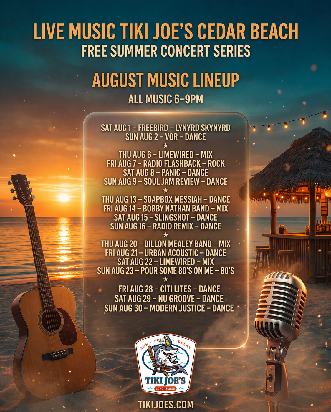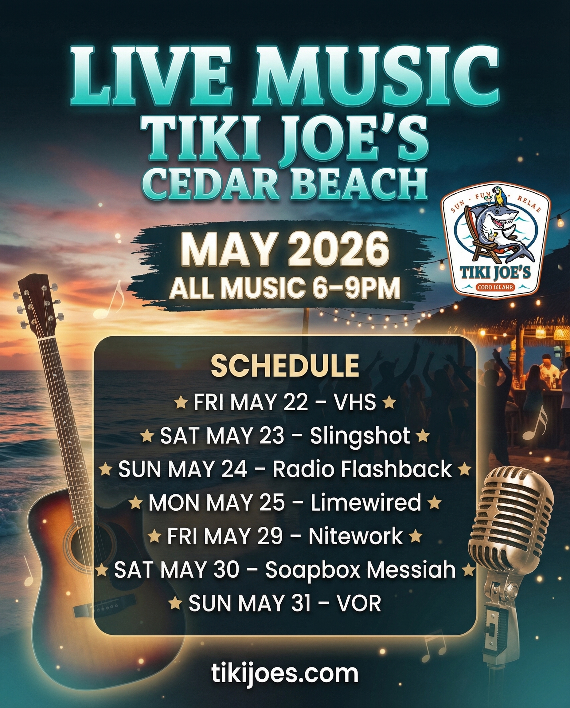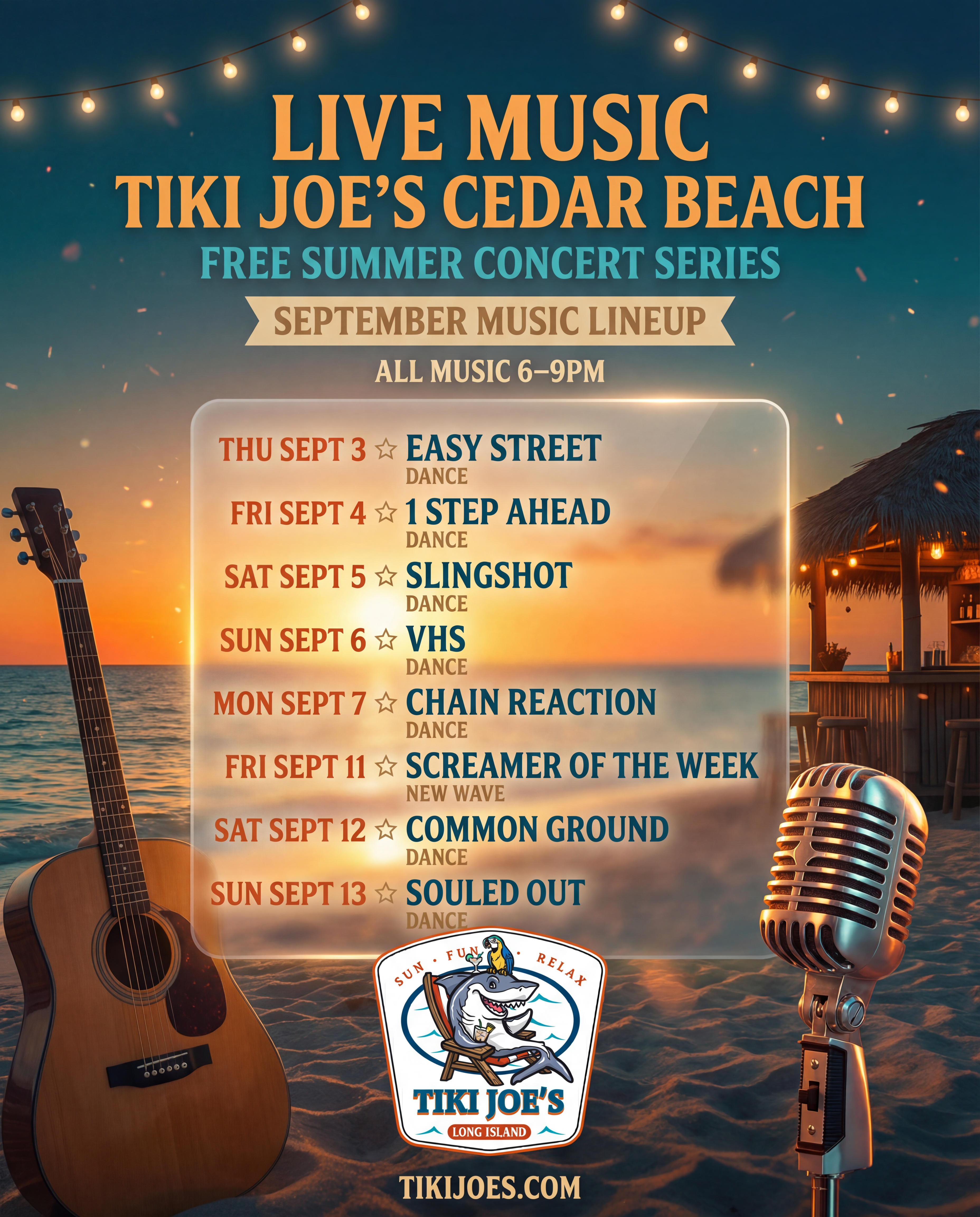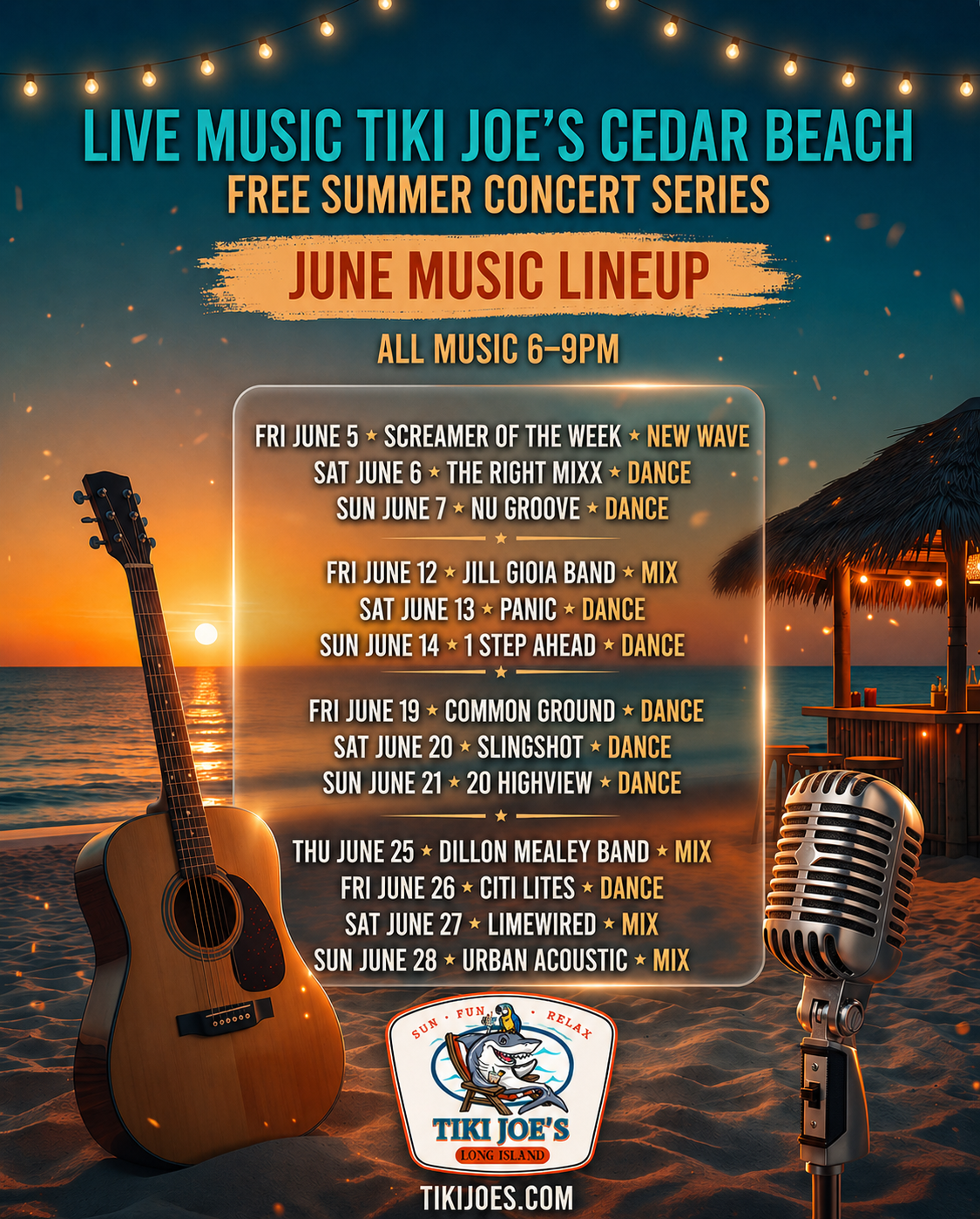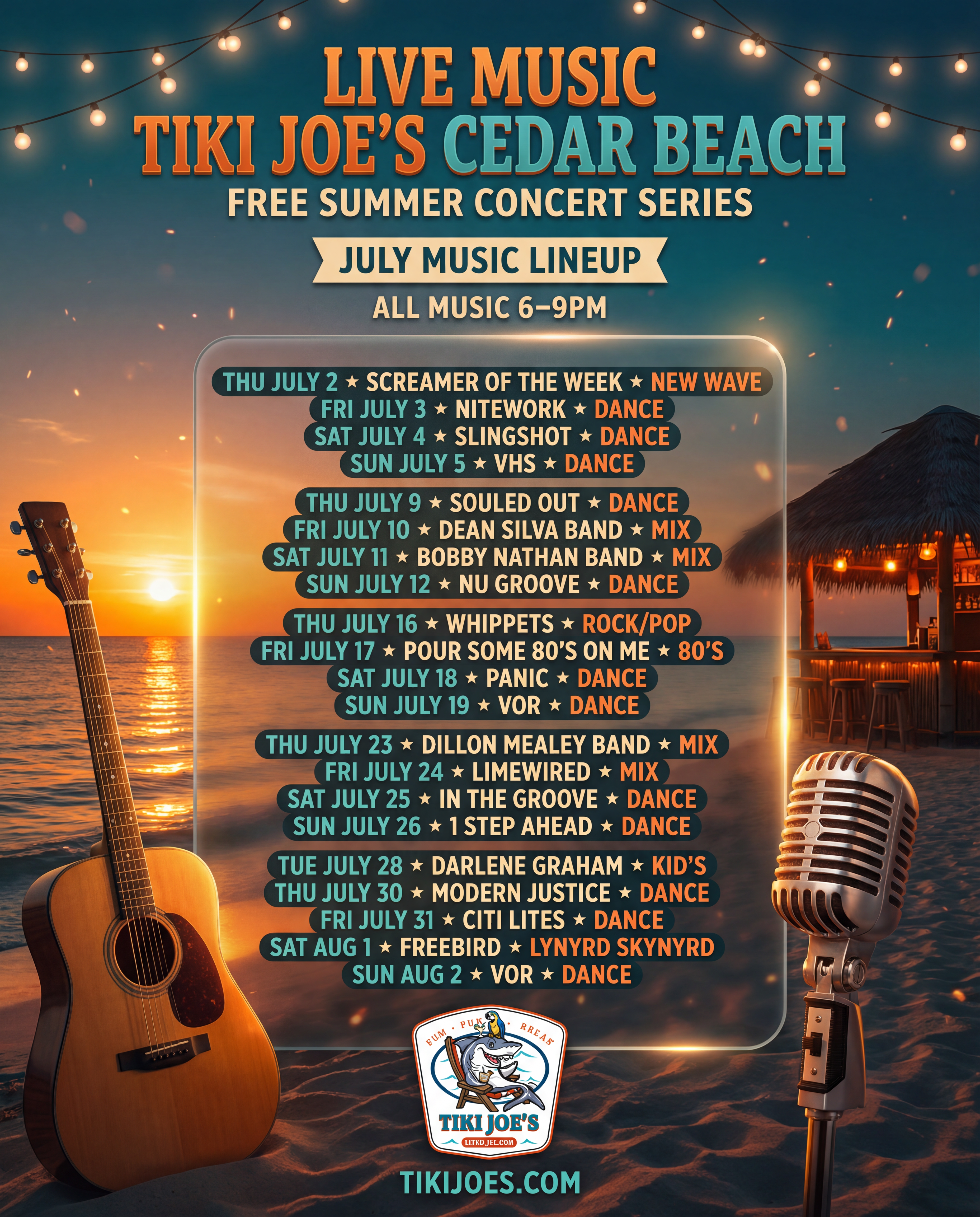 Tiki Joe's Cedar Beach Free Summer Music Schedule